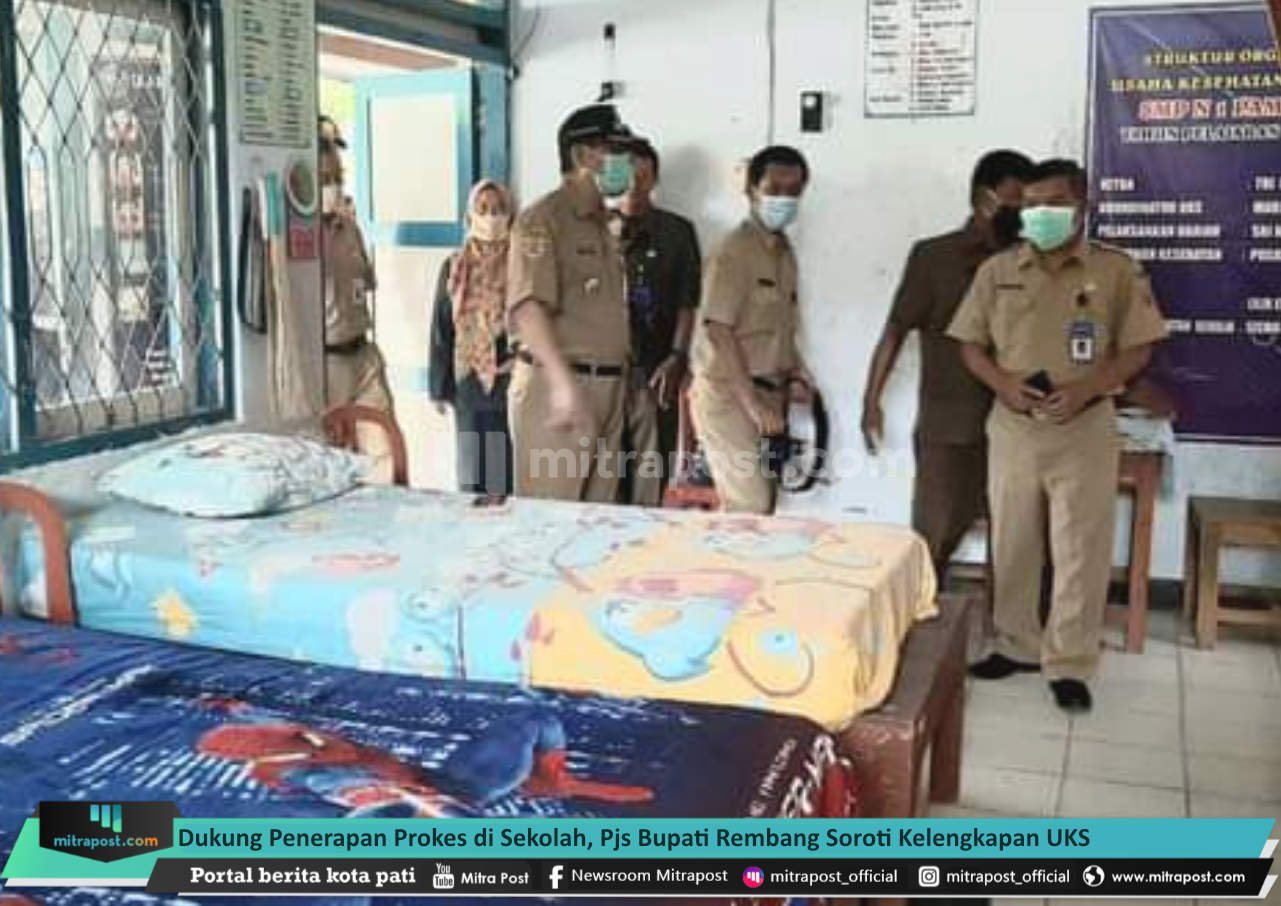 Rembang, Mitrapost.com – Unit Kesehatan Sekolah (UKS) menjadi salah satu perhatian Penjabat Sementara (Pjs) Bupati Rembang, Imam Maskur saat menyambangi empat sekolah yang melakukan simulasi KBM tatap muka. Pasalnya, ia menilai UKS menjadi bagian penting dalam mendukung penerapan protokol kesehatan.