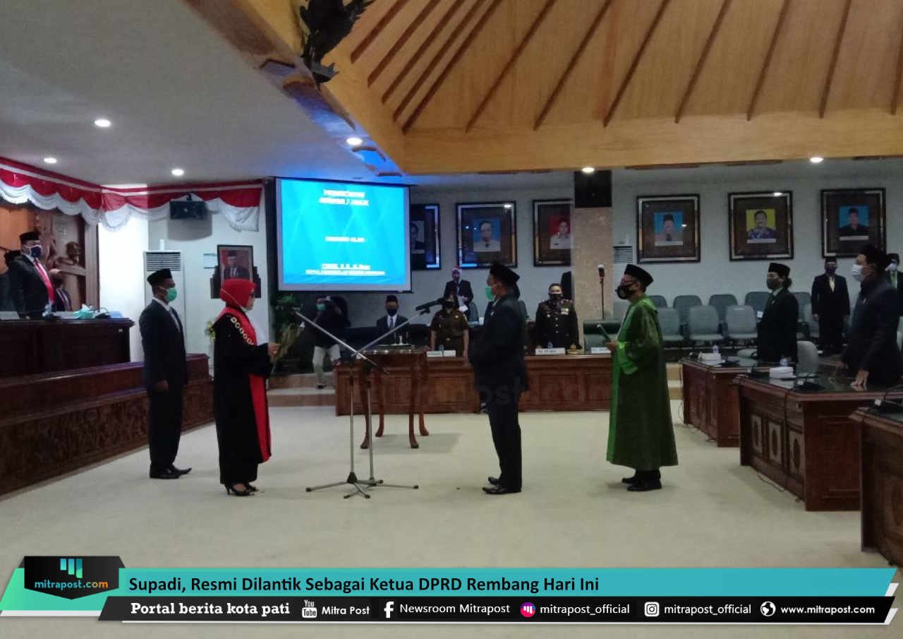 Rembang, Mitrapost.com Pengukuhan Supadi sebagai Ketua DPRD Rembang berlangsung hari ini, Kamis (5/11/2020) di ruang paripurna DPRD Rembang.
