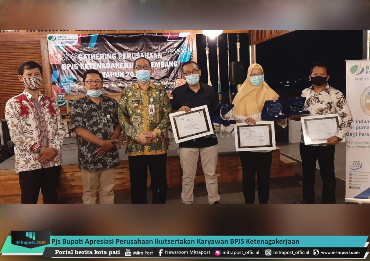 Rembang, Mitrapost.com – Badan Penyelenggara Jaminan Sosial (BPJS) Ketenagakerjaan memberikan penghargaan kepada sejumlah perusahaan di Pollos Hotel, Jum’at malam (20/11/2020). Penghargaan diberikan kepada sektor industri, perhotelan dan restoran sampai sektor koperasi dan UKM karena ketaatannya akan kepesertaan jaminan sosial karyawannya.