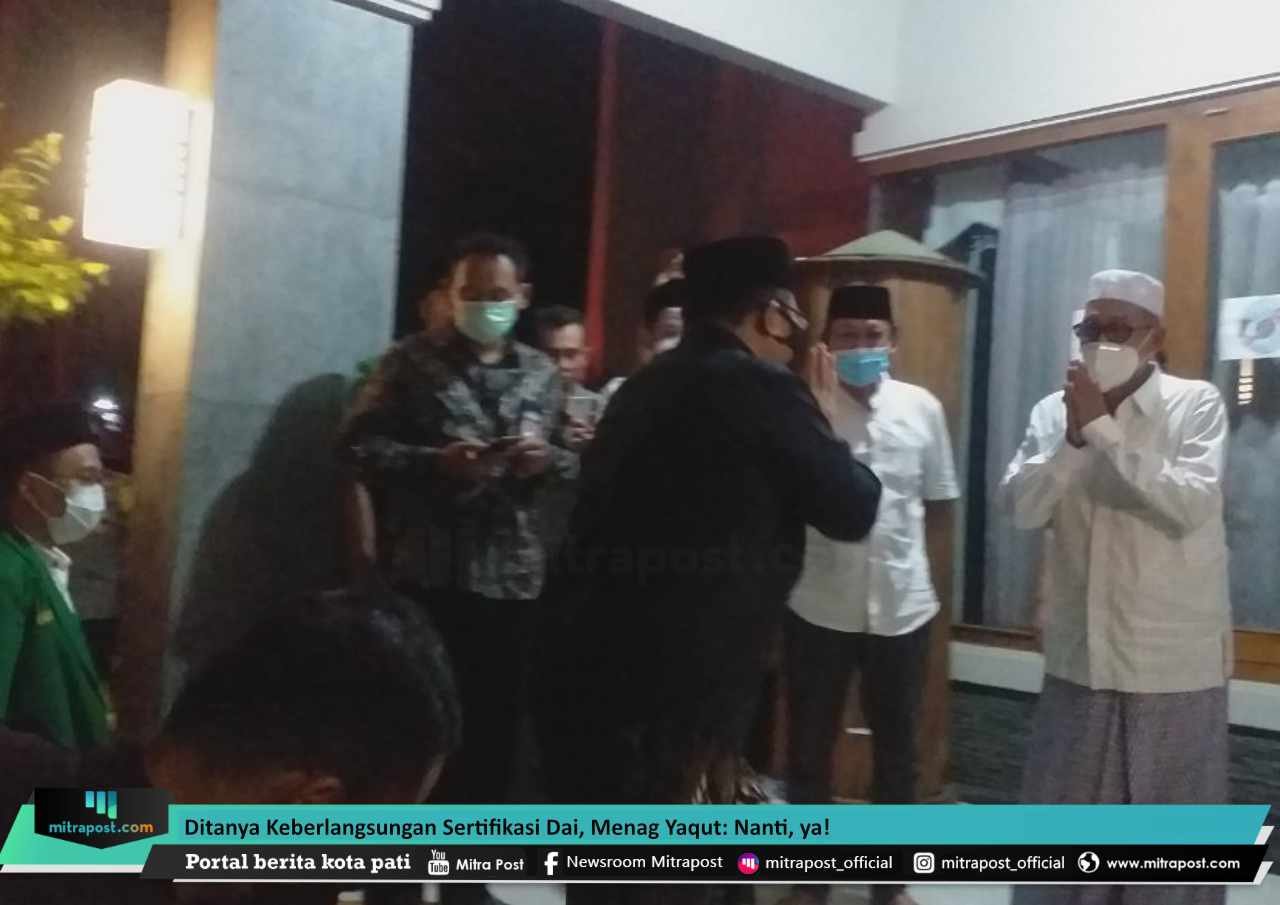 Pati, Mitrapost.com Menteri Agama, Yaqut Cholil Qoumas, belum mau menanggapi keberlangsungan sertifikasi penceramah atau dai yang telah digulirkan Menteri Agama pendahulunya, Fachrul Razi.