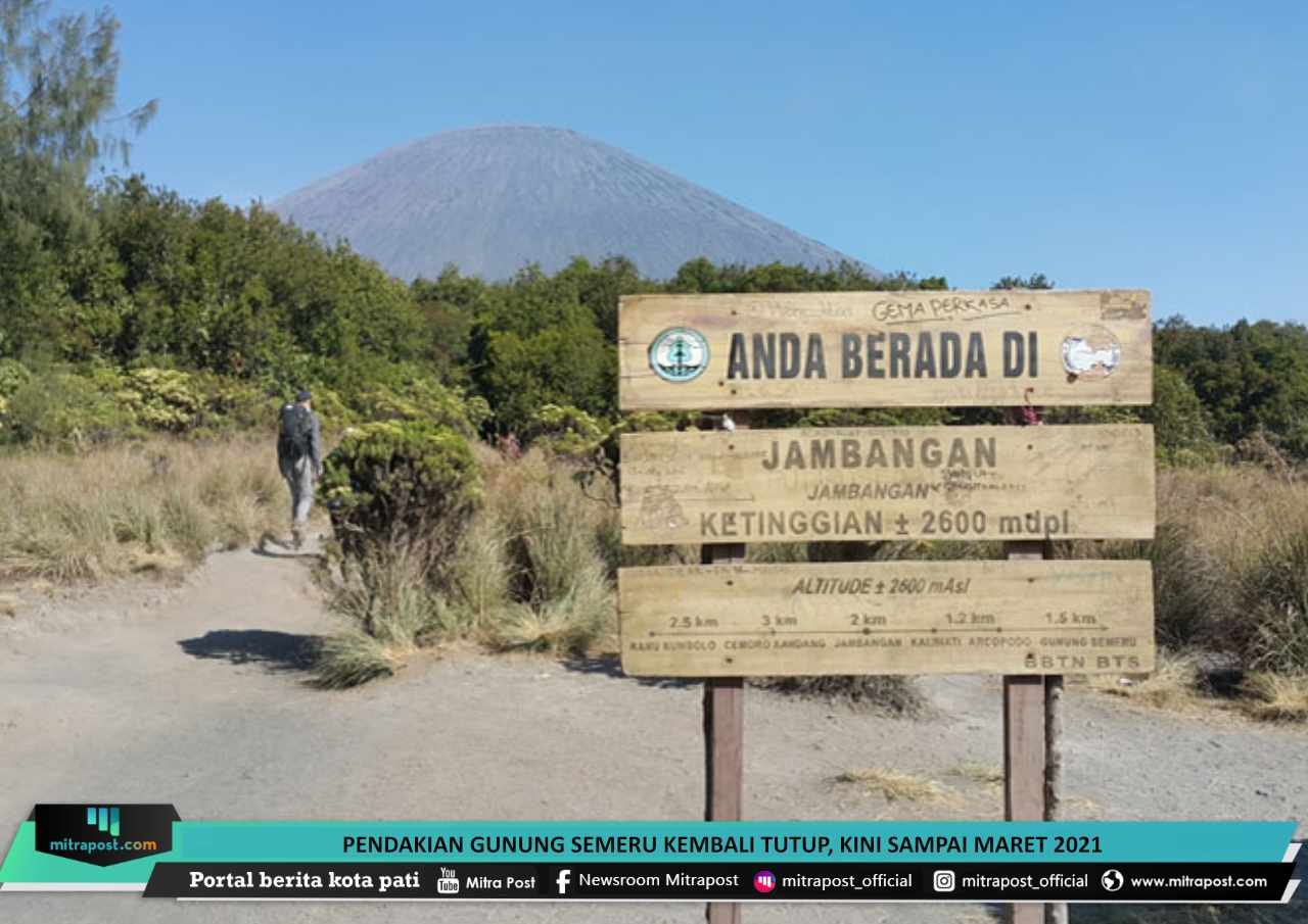 Mitrapost.com – Balai Besar Taman Nasional Bromo Tengger Semeru (BB-TNBTS) menutup pendakian Gunung Semeru hingga Maret 2021. Kebijakan ini mempertimbangkan kondisi cuaca buruk serta pemulihan ekosistem.