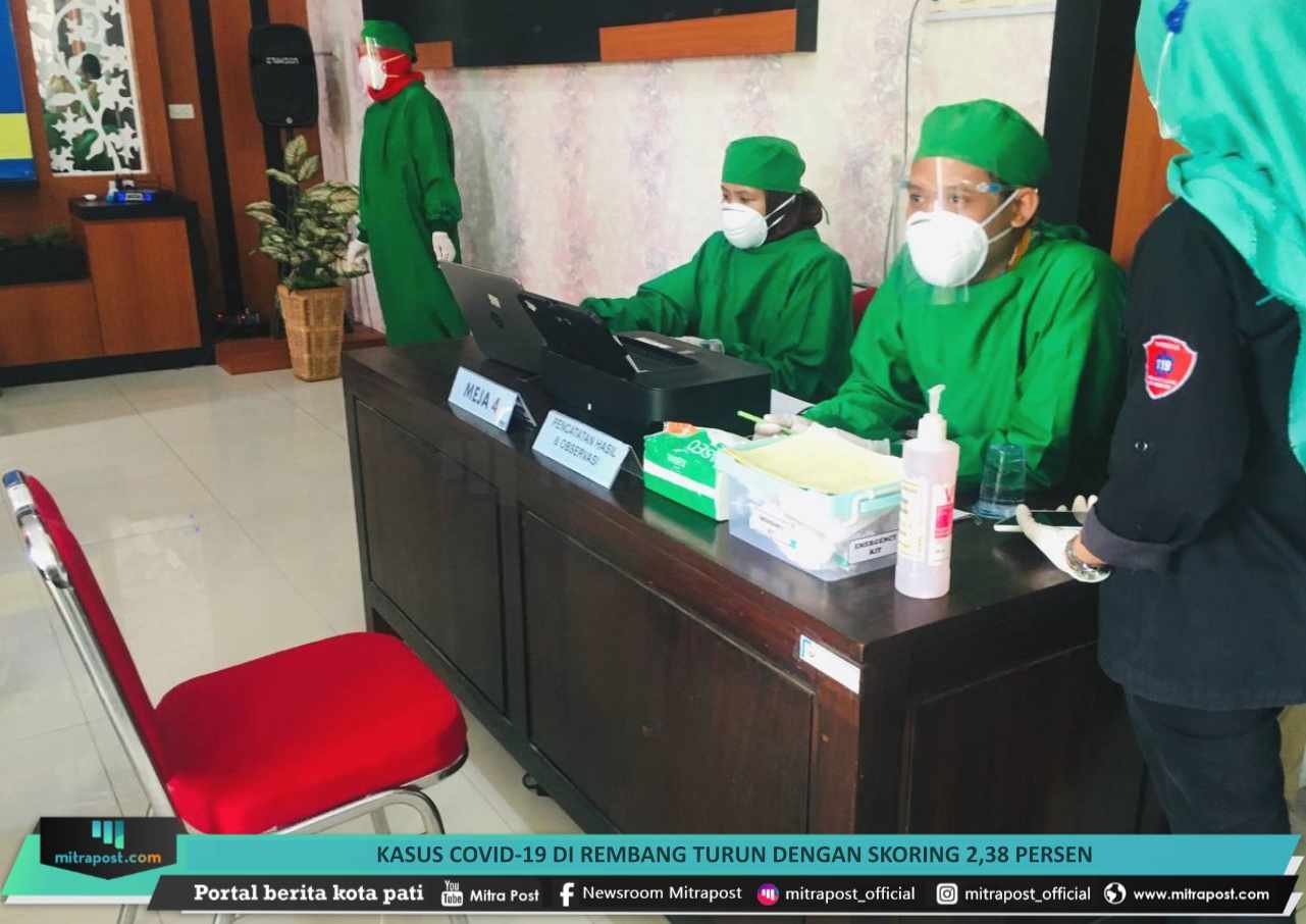 Kepala Dinas Kesehatan Ali Syofii dalam kesempatan yang sama menyampaikan saat ini Rembang berada di zona oranye dengan risiko penularan virus corona sedang serta skoring 2,38 persen.
