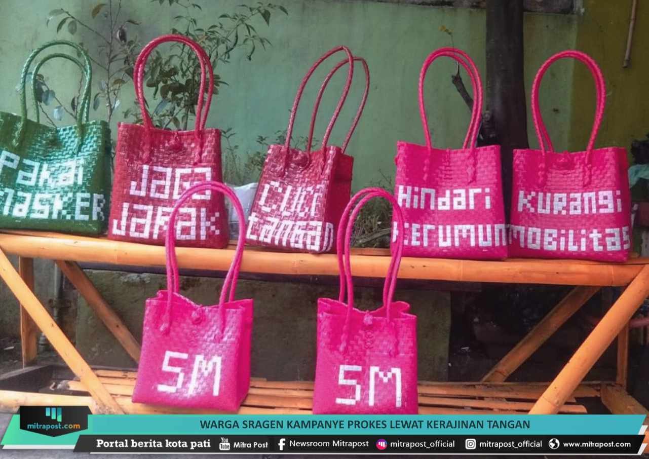 Sragen, Mitrapost.com – Pemerintah Desa Sepat, Kecamatan Masaran, Kabupaten Sragen mempunyai cara unik untuk mengedukasi masyarakat untuk menerapkan protokol kesehatan. Pemdes setempat menggunakan kerajinan tangan bernilai jual yang disisipi pesan protokol kesehatan.