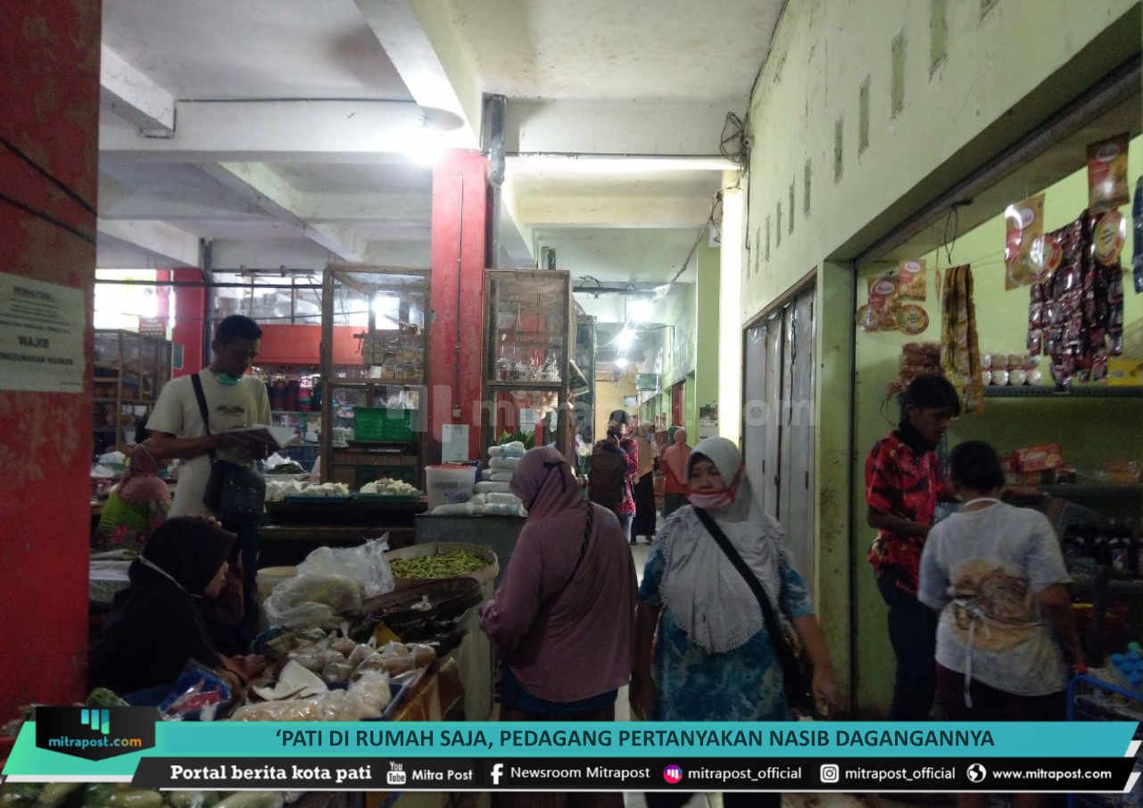 Pati, Mitrapost.com – Pedagang Pasar Rogowongso (Gowangsan) menanggapi kebijakan Pemkab Pati, ‘Pati di Rumah Saja’ yang akan dilaksanakan tanggal 26 dan 27 Juni mendatang.