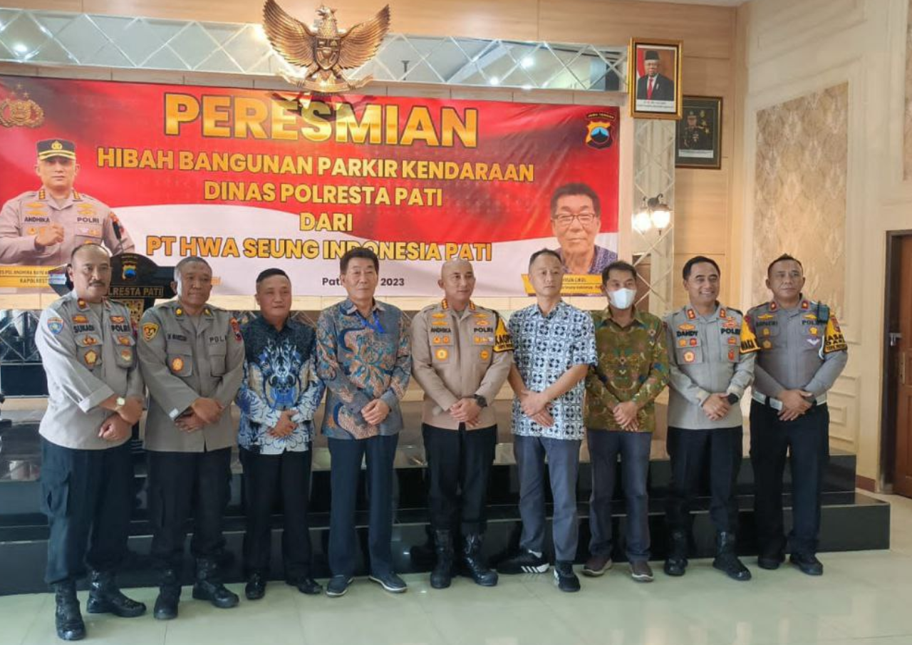 Pati, Mitrapost.com – Kepolisian Resor Kota (Polresta) mendapatkan hibah bangunan parkiran seluas seluas 500 m² dari PT Hwaseung Indonesia (HWI) Pati. Parkiran tersebut nantinya akan dimanfaatkan untuk parkir kendaraan-kendaraan besar milik Polresta Pati.