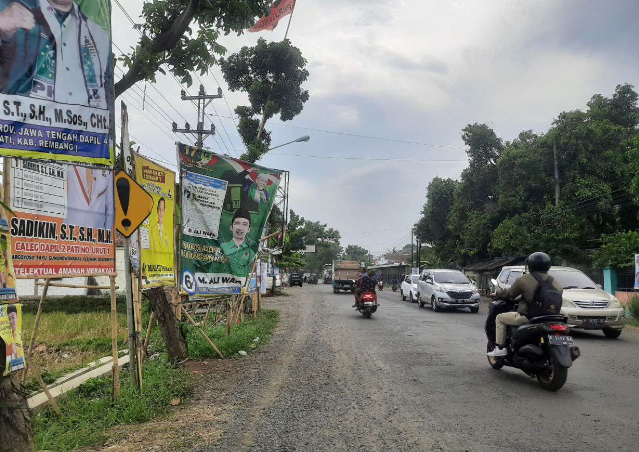 Pati, Mitrapost.com – Baliho kampanye milik para Calon Legeslatif (Caleg) menjelang Pemilu 2024 dinilai membahayakan pengendara. Lantaran, banyak baliho yang rusak dan roboh dan hanya dibiarkan oleh para Caleg maupun dari Partai Politik (Parpol).